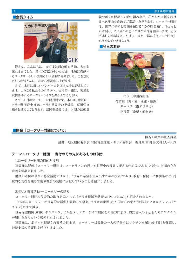 【週報】第1216回例会「ロータリー財団について」