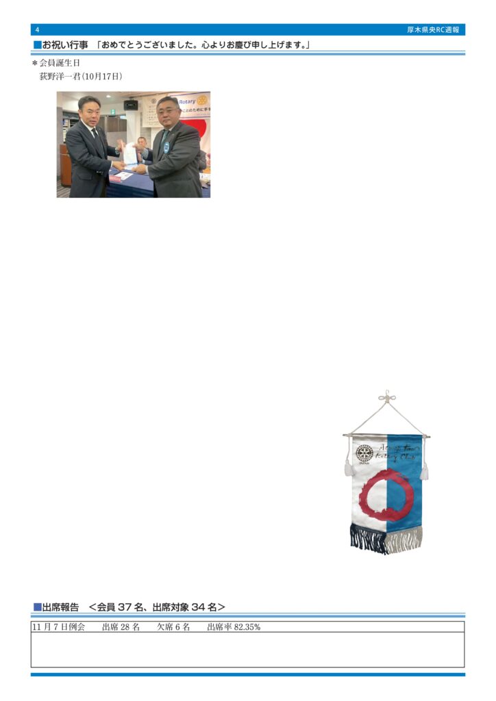 「寄付は義務ではなく、誇りであり感謝の形です」という言葉で卓話を締めくくられました。