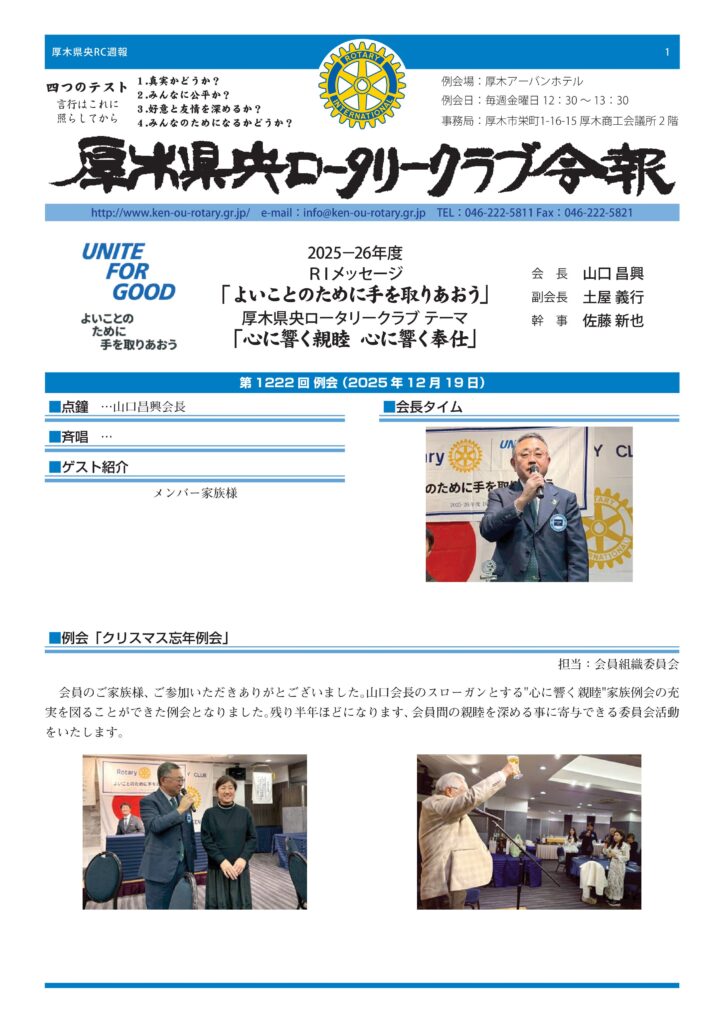 【週報】第1222回例会 例会「クリスマス忘年例会」